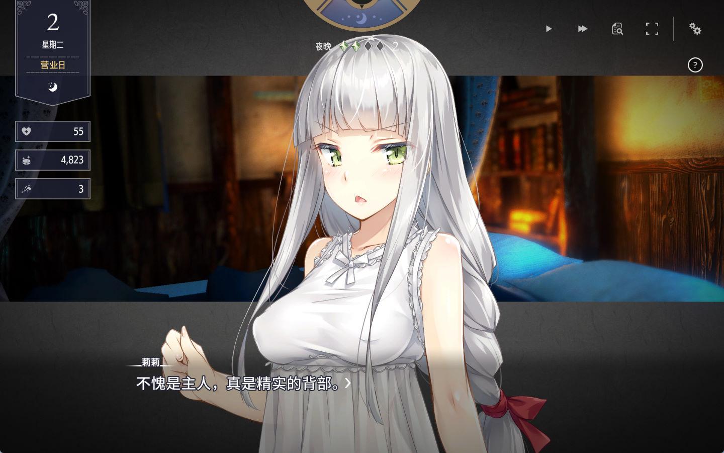 您能在酒馆的店内或寝室和女主角进行互动与交流。